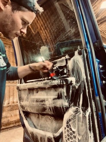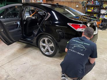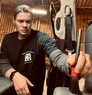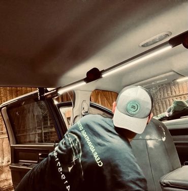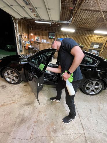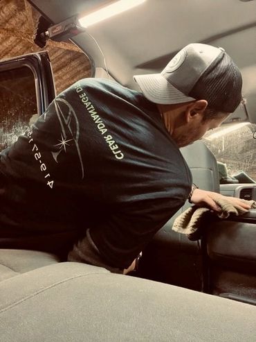 Before & after pictures of interior cleaning of dash and rubber mats.